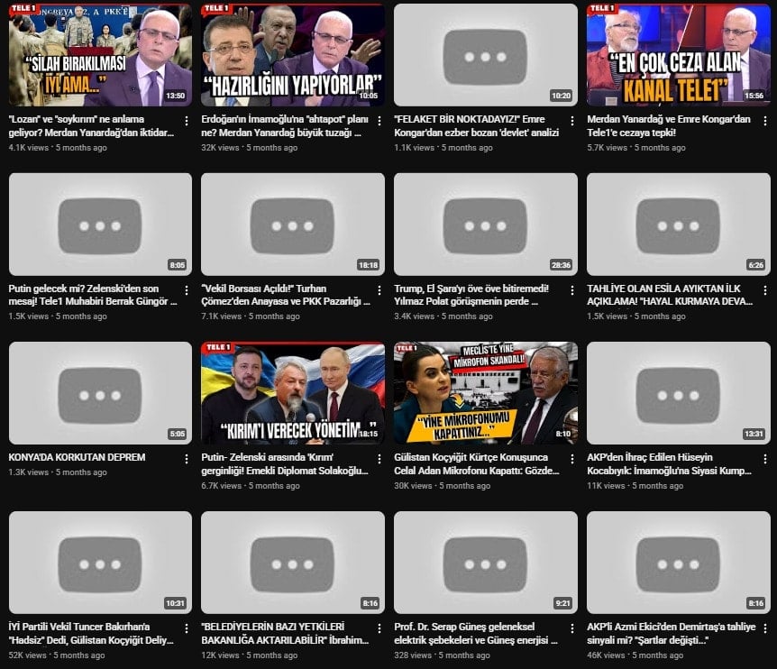 Kayyum atamasının ardından TELE1’in YouTube kanalında son bir ay içinde yayımlanan içeriklerin silinmeye başlaması dikkati çekti.